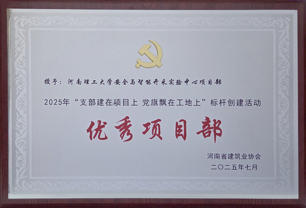 近日,2025年建筑业企业“支部建在项目上 党旗飘在工地上”标杆创建活动评估结果正式公布,完美体育平台凭借在党建与业务融合方面的突出表现,荣获“标杆创建活动先进企业”称号;公司河南理工大学安全与智能开采实验中心项目部获评“标杆创建活动优秀项目部”。